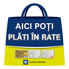 “Optiunea de plata in rate cu 0% dobanda prin cardul tau de cumparaturi de la Alpha Bank (VISA CREDIT, VISA GOLD, COSMOTE MASTERCARD, MASTERCARD CREDIT)